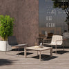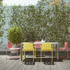 An outdoors collection inspired by classic wooden garden furniture. The seat of the chairs, loungers, and stools of the Dasia line – with or without armrests – is fashioned from curved strips of powder-coated aluminum and supported by a four-leg or sled frame. Resistant and light, they are easy to move around; the chair and lounger can be stacked easily. Dining chairs, lounge chairs, and a stool for your cafeteria, bar, restaurant, lounge area, hotel, resort, home, and residence.